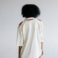 Our Made to Order Genderless Shirt. The shirt features a relaxed collar, button closure at centre front and fastened with corozo nut buttons.
