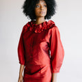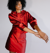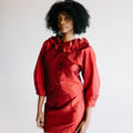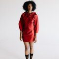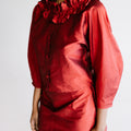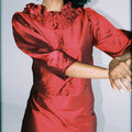 Our Made to Order Jas Mini pairs perfectly with the Sweet Ruffle Blouse in wine. Made from 100% Silk dupion. Features a invisible zipper closure and is fully lined.