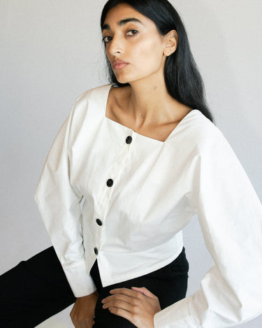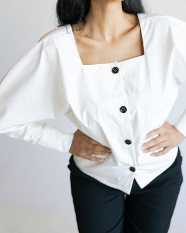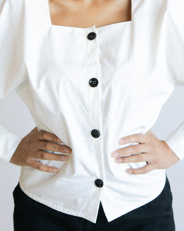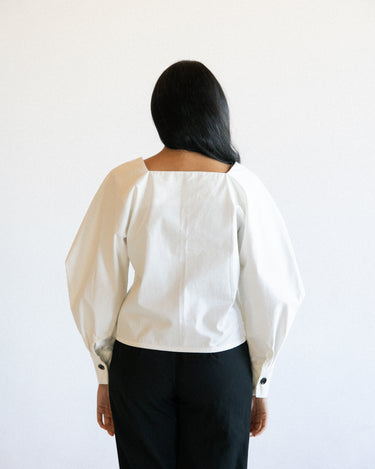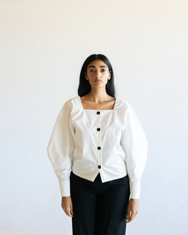 Our Made to Order Sweet Cuff Blouse inspired by our core Sweet Puff Blouse but with a longer sleeve and cuff. The blouse features a beautiful square neckline, curved sleeves, button closure at centre front and fastened with corozo nut buttons.