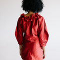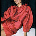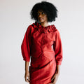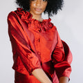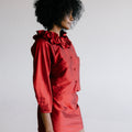 Our Made to Order Sweet Ruffle Blouse inspired by vintage ruffles. The blouse features a beautiful ruffle neckline, curved sleeves, button closure at centre front and fastened with fabricated buttons.